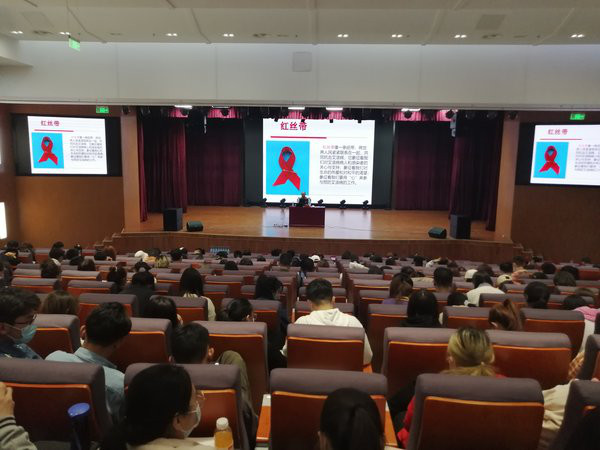 培训现场,大兴区疾控中心性艾科科长吕庆伟详细讲解了艾滋病基础知识、流行趋势、防治措施等内容,针对青少年自我保护方式进行了重点介绍,最后结合现场提问的方式,巩固了学习效果,加深印象。随后工作人员组织学生进行扫码答题,并发放宣传折页、宣传小礼品等共计八种1000余份,受到了学生的热烈欢迎。