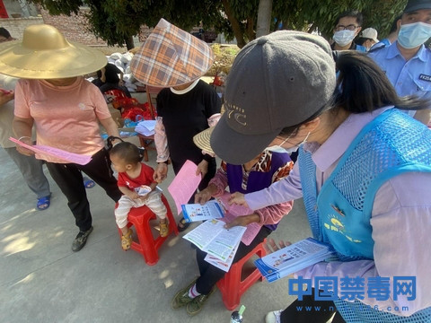 图为禁毒社工向群众发放禁毒宣传单。中国禁毒网发