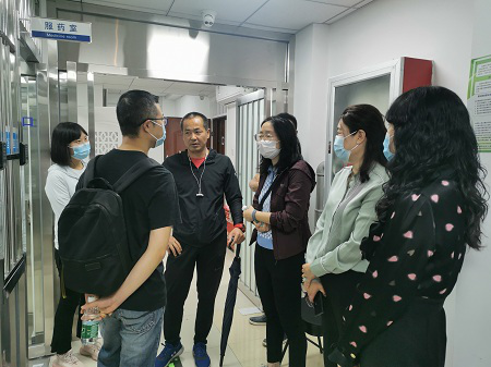 在中国共产党建党100周年来临之际,为保证东城区美沙酮第四门诊新旧址变更的就医安全、患者安全和服药安全,2021年6月2日上午,北京市疾控中心性艾所专家刘国武、东城区卫健委疾控科周珮佳、东城区疾控中心书记李撼、性艾科科长田飞、刘晓琳到东城区美沙酮第四门诊新址进行现场督导。