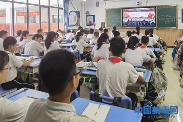 图为学生观看2021年“6·3”虎门销烟纪念日线上直播活动。中国禁毒网发