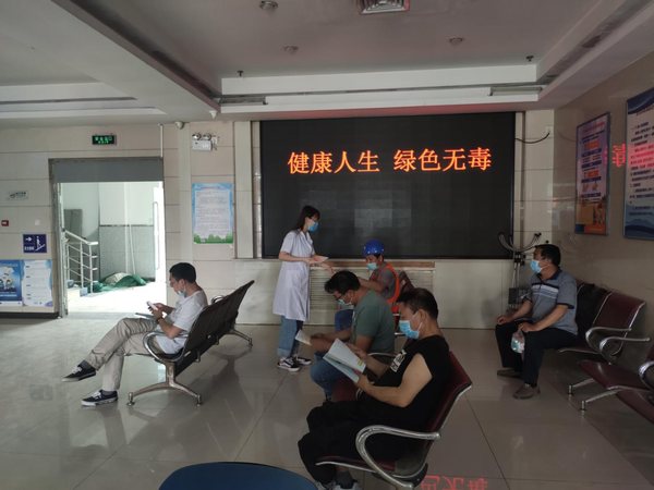2021年6月大兴区青云店镇中心卫生院在医院门诊大厅、预防接种门诊、孝义营村等多地进行禁毒防艾知识宣传。活动现场利用医院大厅电子屏,滚动播放禁毒宣传语,通过悬挂横幅、发放宣传材料等方式对群众进行宣传,共计发放宣传材料2种160余份,受众200余人。此次宣传使群众进一步认识到禁毒和预防艾滋病的重要性。