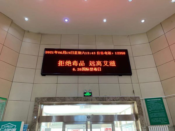 为了推进辖区禁毒工作与艾滋病防治工作的社会化、常态化的发展,医院内门诊楼电子屏滚动播出“拒绝毒品 远离艾滋”的标语,宣传栏张贴禁毒宣传知识。通过此次宣传进一步提高居民防毒能力,禁毒意识 。