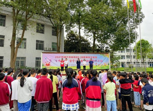 2021年南充市高坪区6.26禁毒防艾宣传暨“百镇千村”留守儿童安全知识宣讲活动在高坪区溪头中小学举行。
