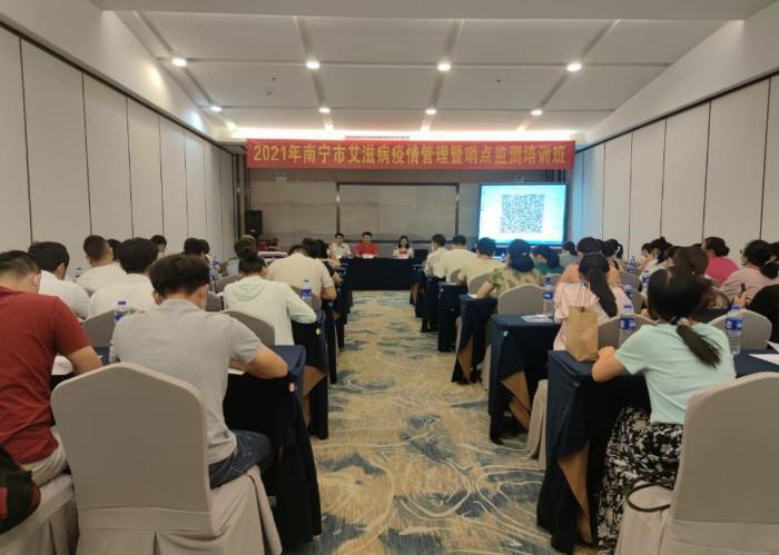 为进一步提高南宁市驻邕医疗机构艾滋病病例报告质量,规范艾滋病疫情报告管理,加强艾滋病病人和感染者随访管理,7月8日,南宁市疾控中心在南宁市东春大酒店举办2021年驻邕医疗机构艾滋病防控工作培训班。参加本次培训班的有各驻邕医疗机构负责艾滋病疫情报告及随访管理人员,各抗病毒治疗点工作负责人等97个医疗卫生单位,共106名艾滋病防控相关人员。