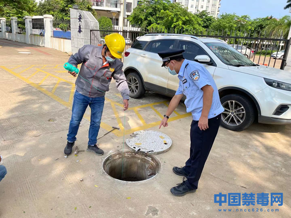 中国禁毒网讯(通讯员 杨文杰)8月6日,海南省洋浦经济开发区禁毒办民警会同专业监测公司工作人员,先后对投放在开发区10个居民小区和3娱乐场所排污点的监测仪器进行投放和回收,对仪器收集储存到的污水进行毒品残留检验。