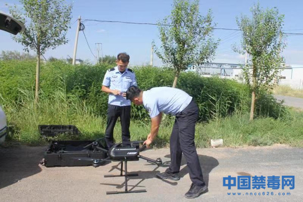 图为民警利用“无人机”航拍开展“空中巡查”。中国禁毒网发