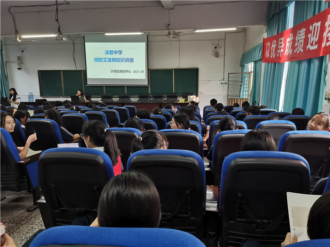 四川教育新闻网乐山9月26日消息 为进一步加强学生对艾滋病防控知识的了解和健康生活的认识,做好艾滋病的宣传、防控工作,9月24日下午,学校邀请沙湾区疾控中心两位专家文光芬和谭乔老师在讲学厅为2021级新生开展了以“知艾防艾?共享健康”为主题的知识讲座,全体高一新生670余人分四个场次认真聆听了本次讲座。