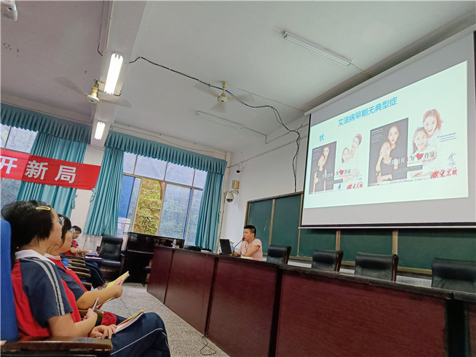 接着,两位老师分别从“艾滋病是什么”、“怎么样传播”、“有什么危害”、“HIV就在我们身边”、“生理卫生”、“禁毒防艾”、“国家政策”等方面为同学们详细讲解了艾滋病病毒。老师强调了艾滋病通过性、血液、母婴传播以及艾滋病的危害等重要内容,并结合真实案例进行讲解,提高了同学们对艾滋病的防范意识。