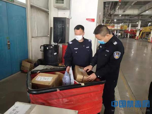 图为工作人员对辖区寄递物流企业督导检查现场。中国禁毒网发