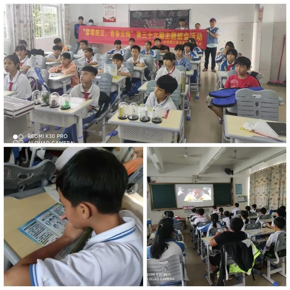 为了提高青少年学生识毒、防毒和拒毒的能力和“防艾”意识,提升禁毒防艾青少年学生宣教队伍的能力。2021年10月27日,共青团三亚市海棠区委员会联合省三亚戒毒所驻海棠区社戒社康指导中心民警、永宁社区、营头村、藤桥村、东溪村、升昌村等村居禁毒专管员,先后走进海棠区黎场小学、第一小学组织开展了“禁毒防艾,青春无悔”主题班会和“拒毒防艾,健康逐梦”宣教队伍提升训练暨骨干选拔活动。共计90名青少年学生参与活动。