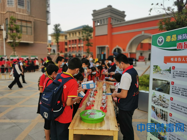 图为禁毒社工向学生介绍毒品的危害。中国禁毒网发