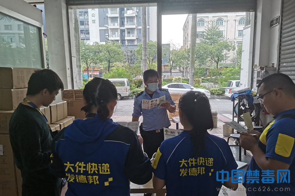 中国禁毒网讯 近日,广东省佛山市顺德区均安派出所和禁毒志愿者全面走访辖区内快递网点,开展禁毒宣传活动。