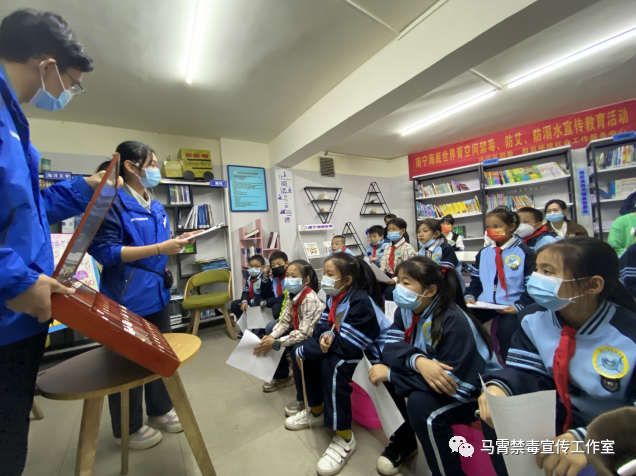 活动当天,南宁海底世界邀请南宁市安宁路小学三年级和四年级的20名学生和20名家长,共计40人参加活动。本次活动,工作人员先是编制关于禁毒防艾防溺水的展板和知识问卷,让学生跟着家长一起了解关于毒品和禁毒法的知识。随后,蔚蓝环境社会工作服务中心的老师以兴宁区禁毒办提供的整套教具为基础,讲解常见毒品的伪装术,及各类毒品的副作用,同时还通过现场介绍及发放宣传单,总结和公布问卷答案的方式,宣传禁毒的法律法规。