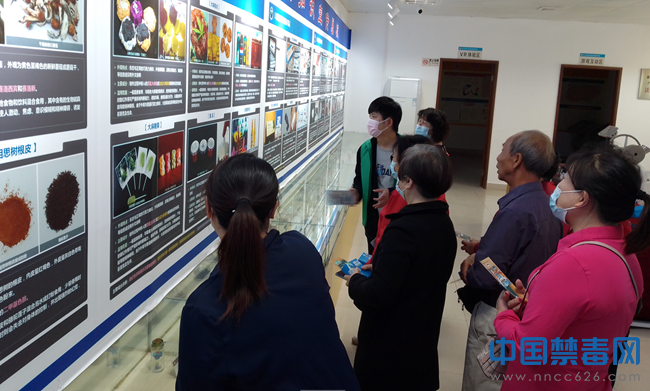 活动中,在讲解员的指引和介绍下,参观人员依次参观了禁毒知识墙、仿真毒品展柜、模拟制毒工厂,毒品防范知识墙等多个不同主题的区域,全方位学习禁毒知识。