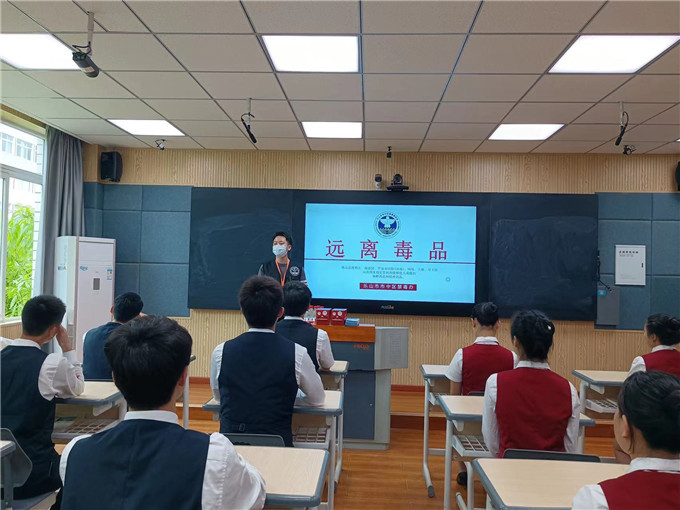四川教育新闻网乐山4月14日消息 为深入推进青少年法治宣传教育工作,提升中职学生法治意识和自我防护能力,建设平安和谐校园,4月13日,乐山市计算机学校特邀请到苏稽镇社会工作部陈均医生和乐山市市中区公安分局禁毒大队宋警官到学校进行防艾禁毒知识专题讲座。此次讲座主会场设在学校行知楼312录播室,各班级设分会场,全校师生参加。