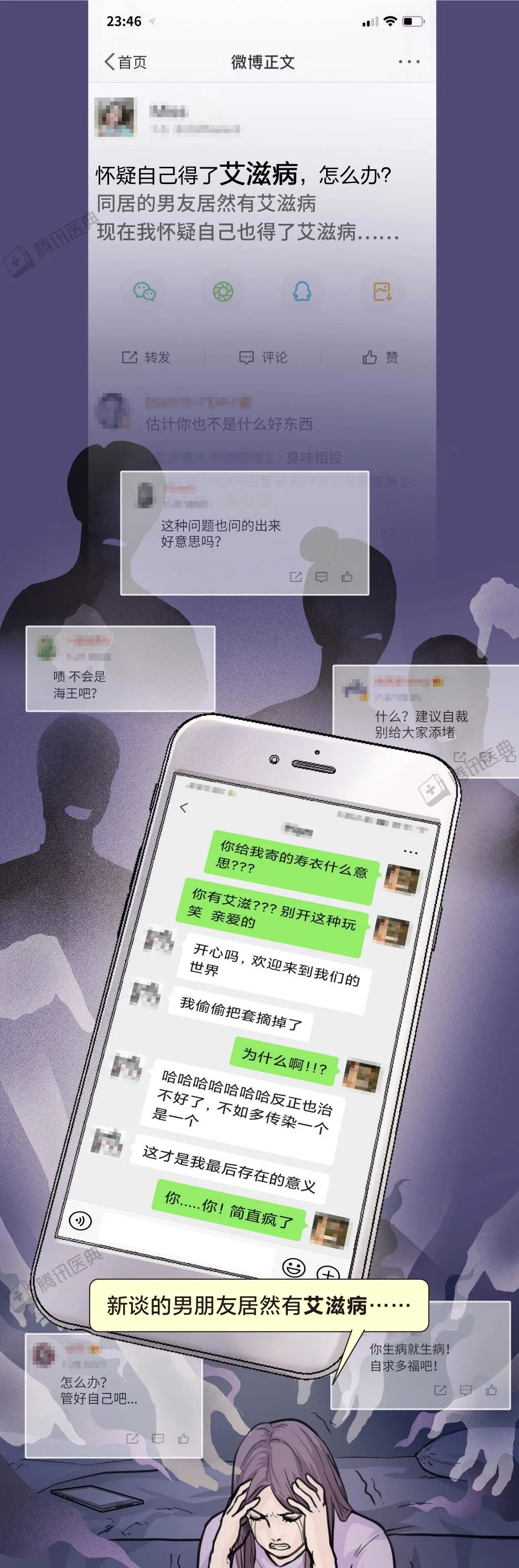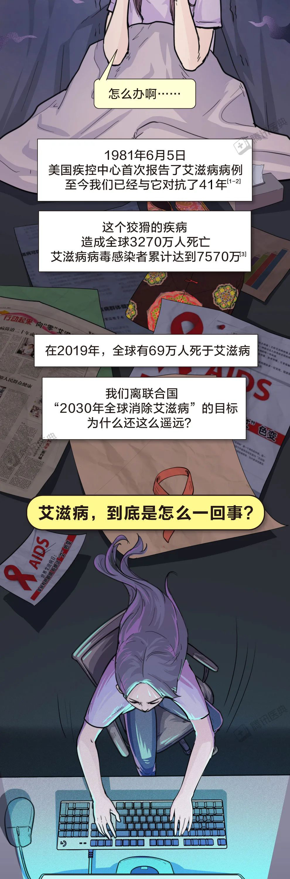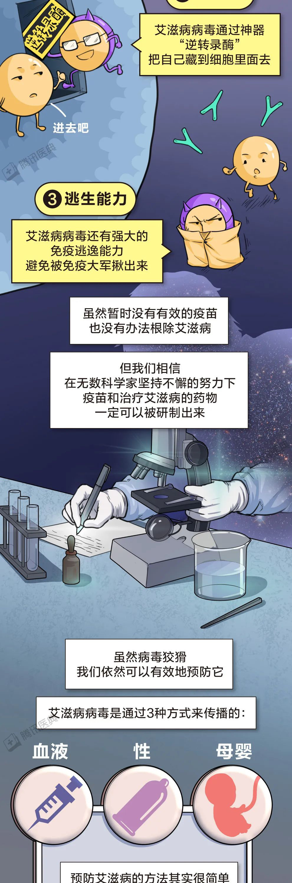 所以希望大家可以用理智的目光去看待这类人,因为他们在患病的同时,不仅承受着生理性的折磨,还同时承受着别人异样的目光,希望大家可以放下歧视的心理,用平常心去看待他们,下面让我们用这组漫画一起了解一下,什么是艾滋病,如果患有艾滋病,该如何应对。