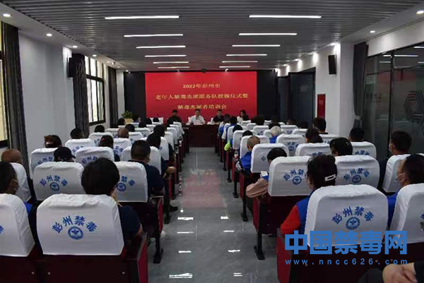 图为彭州市老年人禁毒志愿服务队授旗仪式暨禁毒志愿者培训会现场。中国禁毒网发