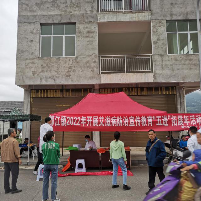 5 月 11 日上午,三都县都江镇防艾办以赶集天为契机,联合都江镇中心卫生院开展艾滋病防治宣传教育“五进”拓展年活动,大力宣传艾滋病防治知识,提高广大群众防艾意识。
