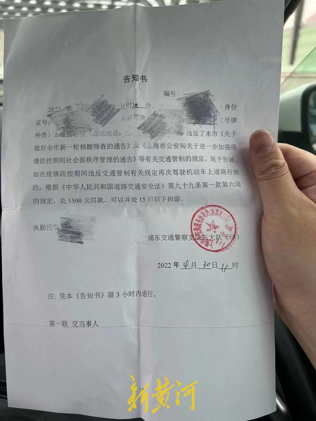 那天他们是分开行动的,志愿者去浦东郊区给一个行动不便的大哥送药,却在路上被交警拦下,出示了所有证件后都说不合规。志愿者也没办法,给陈珺打了电话,陈珺只能在电话反复沟通,表明是为了帮艾滋病感染者送药,一旦断药面临的严重后果,警察才同意放行,但还是开了告知书。从陈珺提供的告知书看,如果下次再开车上路,会被处1500元罚款,还可能处15日以下拘留。