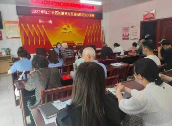为宣传艾滋病防治知识,提高辖区内广大妇女和家庭的知艾防艾意识,共促全民健康和家庭和谐。5月25日下午,河东街道张北社区举行“珍爱生命 远离艾滋”健康知识讲座,辖区50余名居民聆听了讲座。