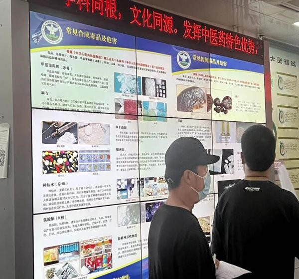 根据新冠疫情防控要求,在院内宣传栏张贴禁毒宣传海报、在门诊大厅电子宣传屏播放宣传视频,让来院就诊的患者及家属,从合成毒品和新类型毒品、《禁毒条例》等方面,对来院人员进行宣传教育;利用禁毒宣传月活动时机,将禁毒宣传与防艾宣传相结合,在患者就诊诊间,对患者进行禁毒、防艾宣传,充分发挥防艾志愿者作用,科学阐明毒品的概念,说明毒品的危害。