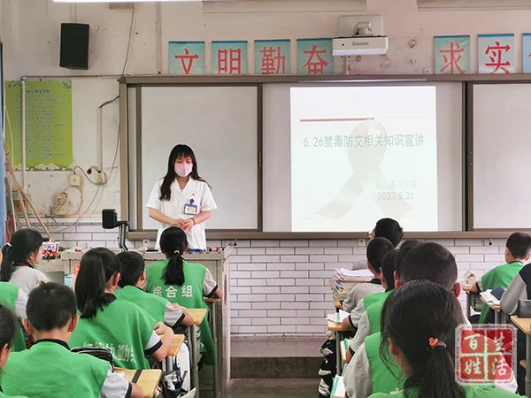 为增强学生禁毒防艾知识、提高学生健康意识,6月24日,福洪镇卫生院一行在福洪中学开展了禁毒防艾知识讲座。