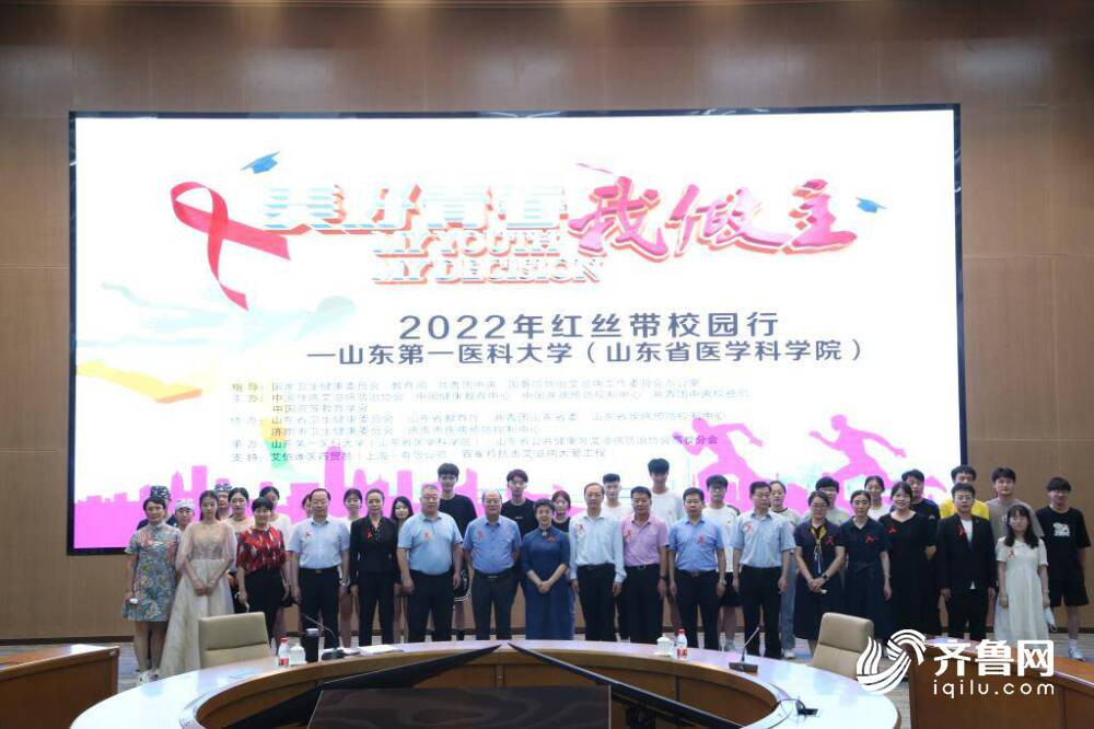 齐鲁网·闪电新闻6月27日讯 近日,由国家卫生健康委员会、教育部、共青团中央、国务院防治艾滋病工作委员会办公室指导,中国性病艾滋病防治协会、中国健康教育中心、中国疾病预防控制中心、共青团中央权益部、中国高等教育学会主办,山东第一医科大学(山东省医学科学院)、济南市疾病预防控制中心、山东省艾滋病防治协会高校艾滋病防治分会承办的“美好青春我做主”——2022年红丝带青春校园行活动走进了山东第一医科大学(山东省医学科学院)。济南市卫健委副主任、济南市疾控中心主任阮师漫,山东省疾控中心艾滋病防制所所长王国永,山一大党委委员、副校(院)长张贤雷、李栋出席活动。中国性病艾滋病防治协会会长郝阳,红丝带健康大使、北京电视台主持人悦悦发来致辞视频。