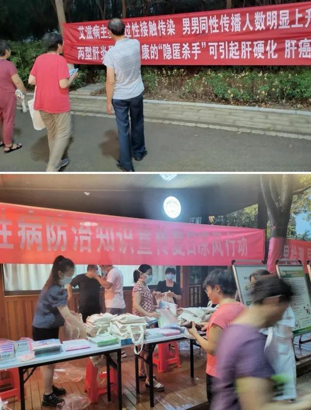8月17日晚,邓州市卫健委在该市人民公园1号健康小屋门前开展艾滋病、丙肝、性病防治知识宣传“夏日凉风行动”。
