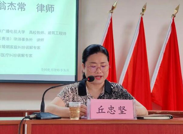 翁律师结合实际从妇女遗产保护、婚姻财产、处理房产保护的方法等方面通过案例分析、解读法条的形式重点讲解了婚姻财产、婚姻债务、抚养权、继承权等方面内容,生动阐释了《民法典》婚姻家庭编和继承编、妇女权益保障法中有关妇女儿童权益保护法律规定的适用,鼓励现场妇女群众学法、懂法、用法,运用法律武器维护自身合法权益。