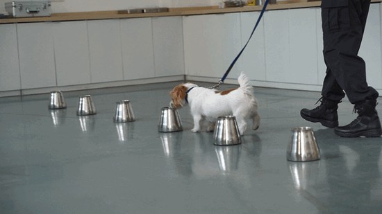 与中大型搜毒、搜爆犬不同,这种小型的杰克罗素梗不仅嗅觉灵敏,在狭窄、狭小的环境中更具体型优势,方便其在低矮处、小角落等死角部位开展搜索、追踪。