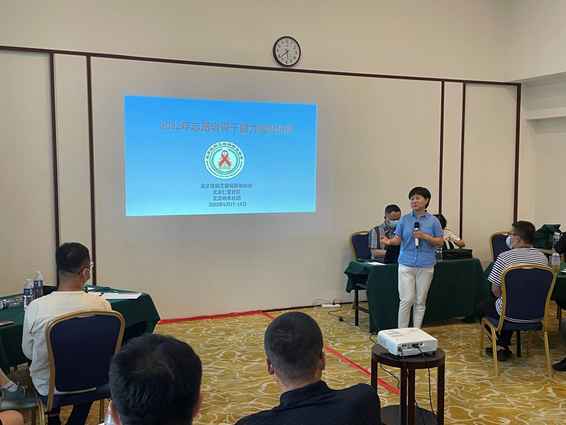 为进一步推动社区小组志愿者团队工作的开展,不断提升防艾志愿者团队的服务能力,更好地发挥社区小组在性病艾滋病防控工作中的作用,北京性病艾滋病防治协会(以下简称北京艾协)联合纳米社团、仁爱社区于2022年9月17-18日在北京昌平汇航桃园酒店举办了为期两天的志愿者骨干能力建设培训,来自社区小组骨干志愿者及相关工作人员共34人参加了培训。