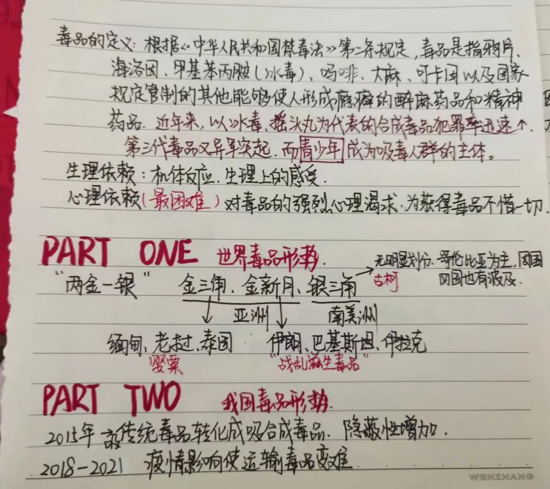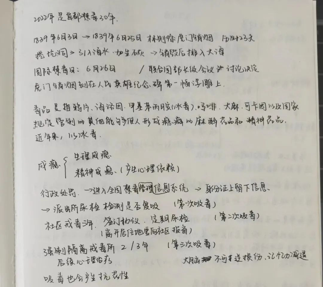 听课过程中,成员们都认真记录,为自己的禁毒知识储备添砖加瓦,同时也为后续的试讲做好准备。来看看大家的成果吧~