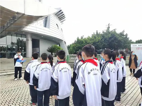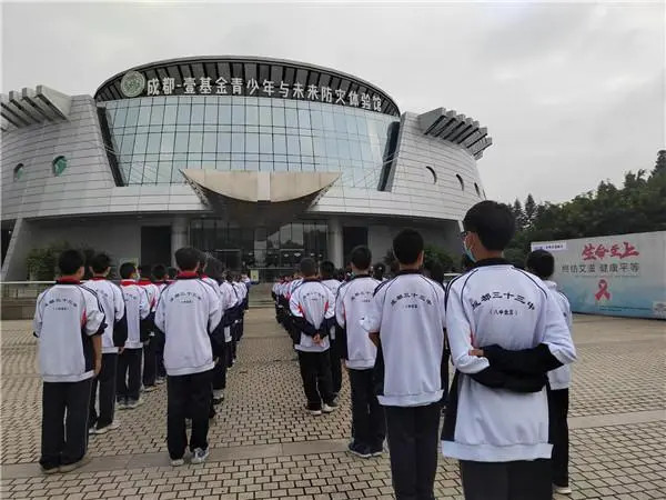 成都市第三十三中学校七年级的同学在校医和班主任的带领下,于2022年10月26日下午从学校出发,抵达金牛区青少年活动中心参加禁毒防艾主题教育活动。