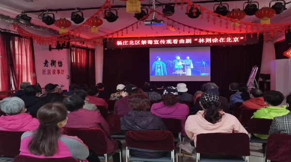 为进一步传承弘扬禁毒先驱林则徐爱国主义精神,铭记历史、厉行禁毒,营造出自觉抵制毒品的浓厚社会氛围,八角街道组织辖区居民观看禁毒曲剧《林则徐在北京》。通过观看此片,进一步提升了广大群众对禁毒工作的知晓度和参与积极性,构筑了全民拒毒的思想防线。