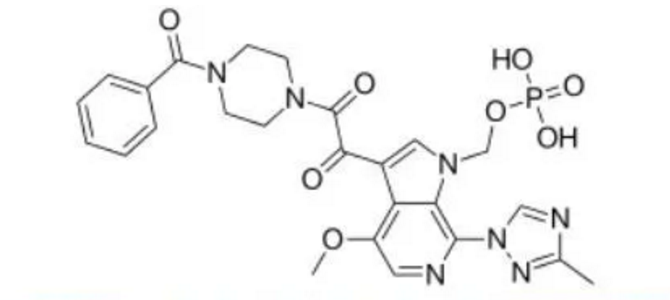 Rukobia的活性药物成分为fostemsavir,这是一种首创的(first-in-class)HIV-1附着抑制剂。fostemsavir是temsavir的一种前药,通过口服后,fostemsavir可转变为temsavir,然后被吸收并通过直接附着在病毒表面糖蛋白120(gp120)亚基发挥抗病毒作用。通过与病毒上的这个位置结合,temsavir可阻止HIV病毒附着到宿主免疫系统CD4+T细胞和其他免疫细胞上,并防止HIV病毒感染这些细胞并增殖。由于Rukobia是第一个针对病毒周期中第一步(附着)的抗逆转录病毒疗法,因此对其他种类的抗逆转录病毒药物没有显示出耐药性,这可能帮助对大多数其他药物产生耐药性的HIV感染者。