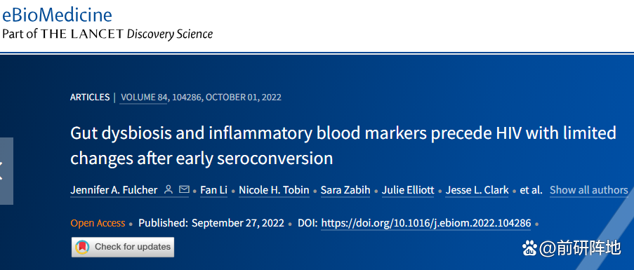 3.eBioMedicine:肠道菌群或会促进机体对HIV感染的易感性