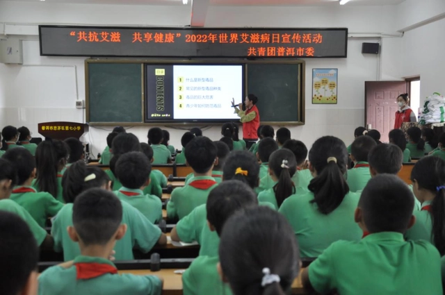 在第35个“世界艾滋病日”即将到来之际,普洱团市委联合思茅区第七小学组织开展“共抗艾滋 共享健康”2022年世界艾滋病日宣传活动。