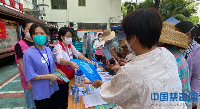 图为工作人员向群众发放禁毒防艾宣传折页。中国禁毒网发