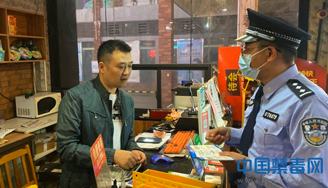 图为民警对网吧从业人员讲解禁毒知识。中国禁毒网发