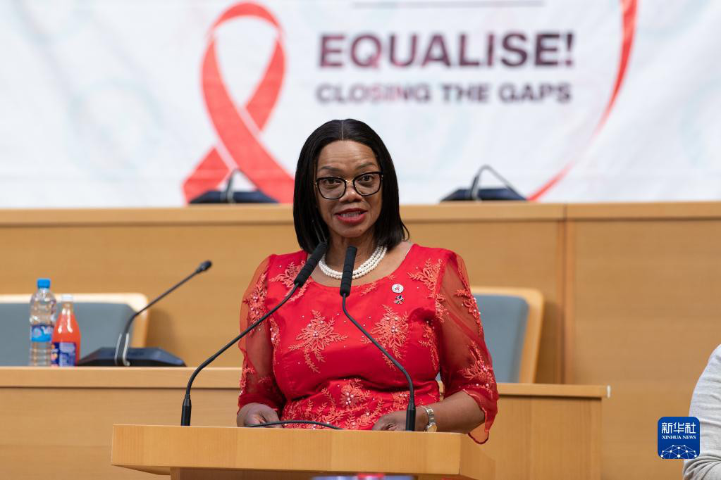 12月1日,在赞比亚首都卢萨卡,赞比亚卫生部长西尔维娅·马塞博在世界艾滋病日宣传活动中致辞。新华社记者彭立军摄