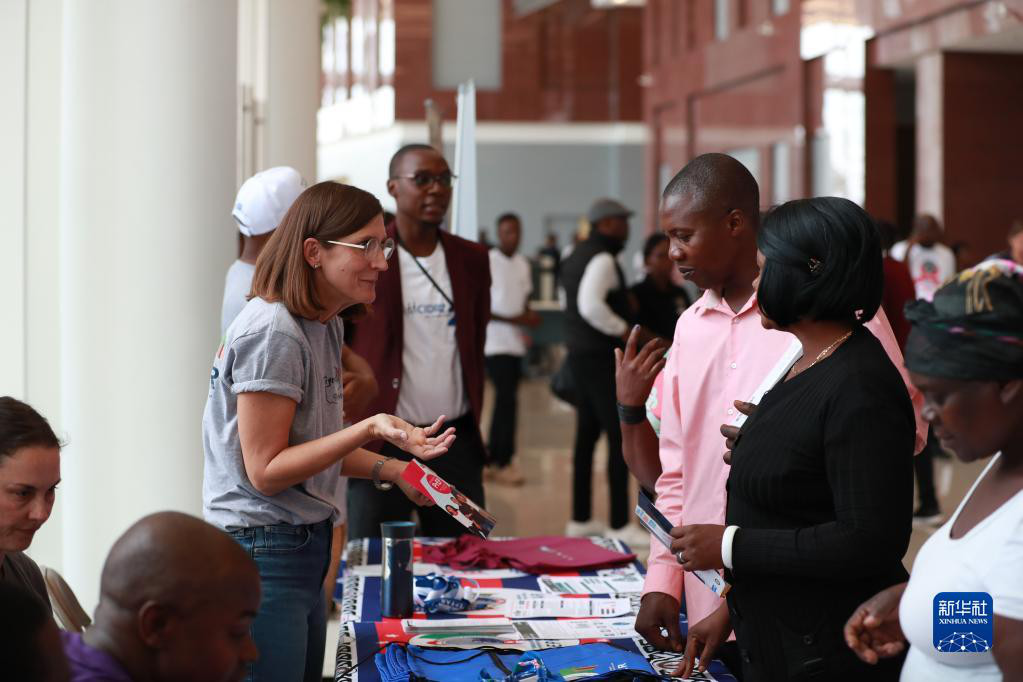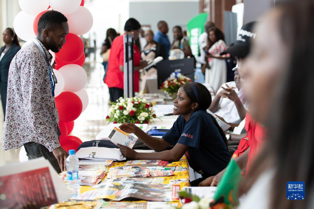 12月1日,在赞比亚首都卢萨卡,人们咨询艾滋病防治知识。新华社记者彭立军摄