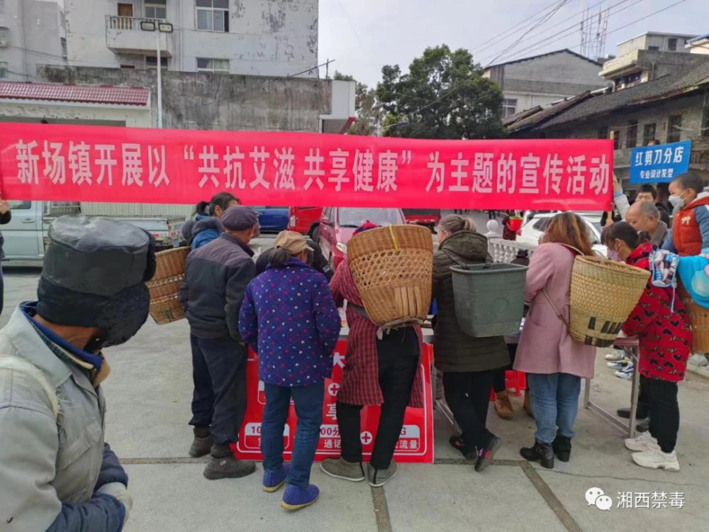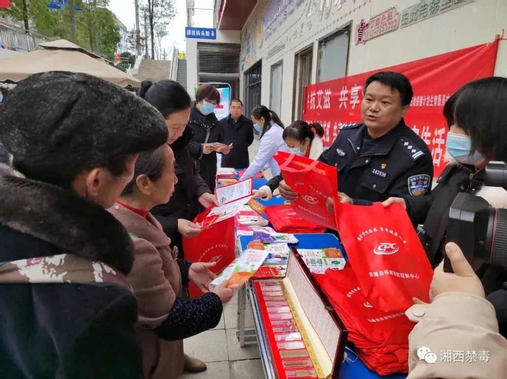 永顺县禁毒办联合县卫健局、县妇联等单位开展“禁毒防艾 健康人生”主题宣传活动。禁毒工作人员通过发放禁毒防艾知识宣传页、宣传品、有奖问答等方式,向广大群众重点宣讲怎样预防艾滋病、吸食毒品及滥用注射器注射毒品导致艾滋病的相关知识,并呼吁大家都能正视艾滋、关注艾滋、预防艾滋,有效提高了群众识毒拒毒能力和防艾意识。