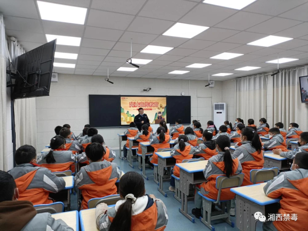 吉首市禁毒办联合卫生健康、教育、团委等部门在乾雅小学开展了以“全民动员,禁毒防艾,共建和谐社会”为主题的宣传教育活动。团市委干部以“拥抱美好健康人生 禁毒防艾预防为先”为主题给乾雅小学四年级的学生带来了一堂生动的禁毒防艾课。向同学们详细讲解了毒品的危害及严重后果、艾滋病传播方面的相关知识,并通过现场互动的方式,让同学们在课堂上积极发言,回答自己对毒品、艾滋病的认识和预防知识,呼吁大家积极参与到禁毒防艾的宣传行动中来,切实筑牢禁毒防艾的思想防线。