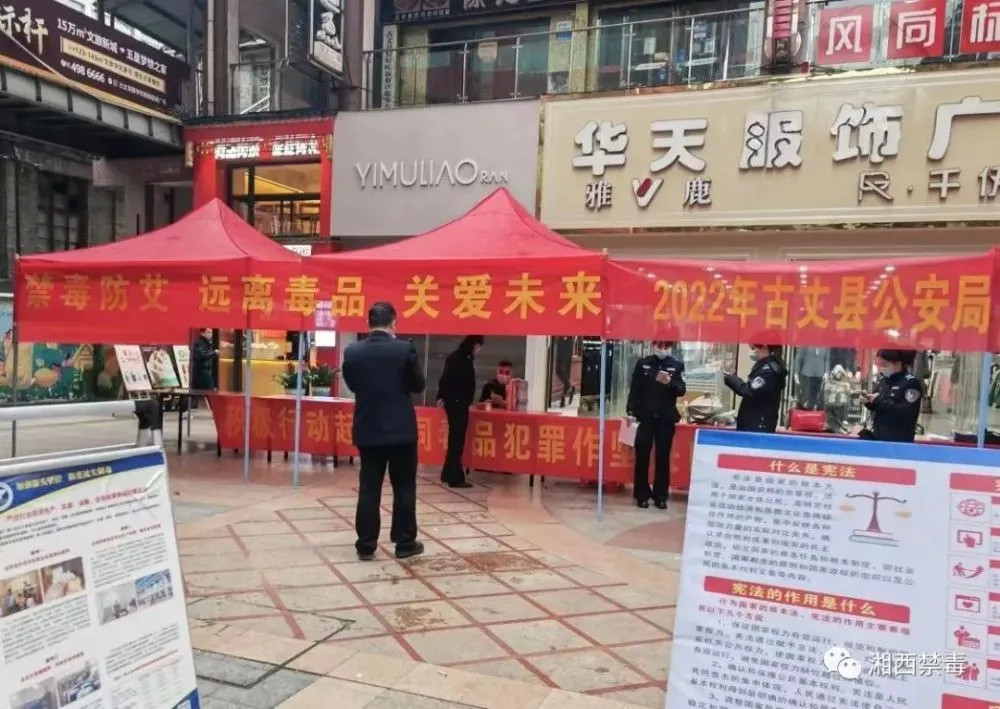 古丈县禁毒办联合多部门在县天润茶都步行街开展“禁毒防艾·珍爱生命”禁毒宣传主题活动。活动现场悬挂宣传横幅、摆放宣传展板、设立服务咨询台、宣传展板、发放宣传手册,对过往群众、沿街店家、商贩、摊主耐心细致地讲解宣传内容,进一步提高了广大群众识毒、防毒、拒毒意识,营造了人人参与禁毒的良好氛围。