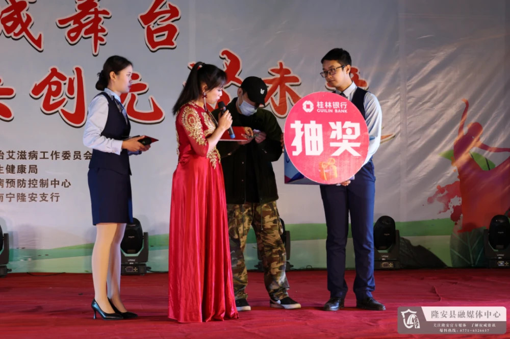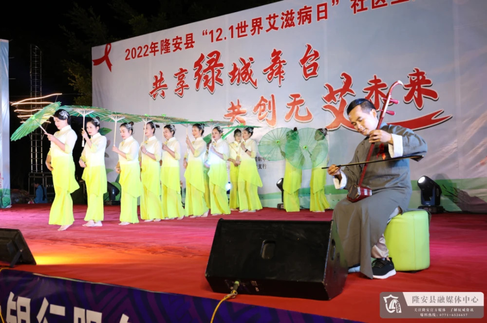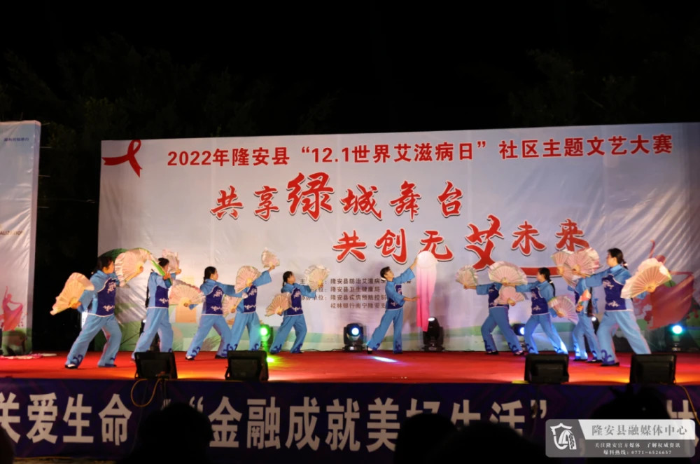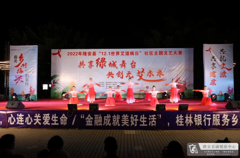 12月11日晚,由县防治艾滋病工作委员会主办,县卫健局承办,县疾控中心和桂林银行南宁隆安支行共同协办的2022年隆安县“12.1世界艾滋病日”社区防艾主题文艺大赛在县蝶城文化广场举行。