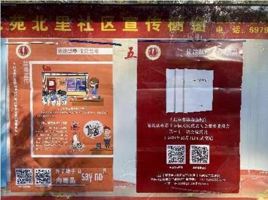 华龙苑北里社区组织开展《北京市禁毒条例》普法宣传活动。社区工作人员在社区宣传栏张贴禁毒宣传海报,禁毒专干向社区居民发放《条例》并讲解相关内容,为大家介绍什么是毒品、毒品的基本特征、如何识别和防范毒品、毒品的危害等知识,引导社区居民依法参加禁毒斗争,自觉抵制毒品,共建无毒社会。