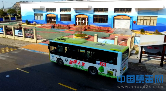 公交车全车采用彩绘喷漆禁毒公益广告,车身印有“健康人生,绿色无毒”等禁毒宣传标语,用图文并茂的形式向过往的群众潜移默化地传播禁毒理念,沿路环绕北岙街道主城区商圈,让“珍爱生命,远离毒品”成为全社会共识。公交车途径公园、小区、医院、学校、菜市场等重点场所,以禁毒预防教育接地气、聚人气、成风气为成效目标,把禁毒火种传递到城区的每个角落。