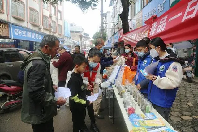 为确保宣传教育全覆盖,上林县防艾办将活动地点设在了人流量较大的集镇上,在每个乡镇的赶圩日当天通过发放防艾、禁毒等宣传资料、宣传礼品,向广大群众宣传普及艾滋病传播途径、感染艾滋病的危害及预防措施,进一步增强群众自我保护意识,自觉抵制不良行为习惯,当好自身健康 “第一责任人”。活动现场,禁毒、防艾志愿者们向群众展示和详细介绍了罂粟、大麻等不同种类的毒品,帮助群众识别毒品种类、了解吸食毒品的危害,引导广大群众洁身自爱,珍爱生命,远离毒品。