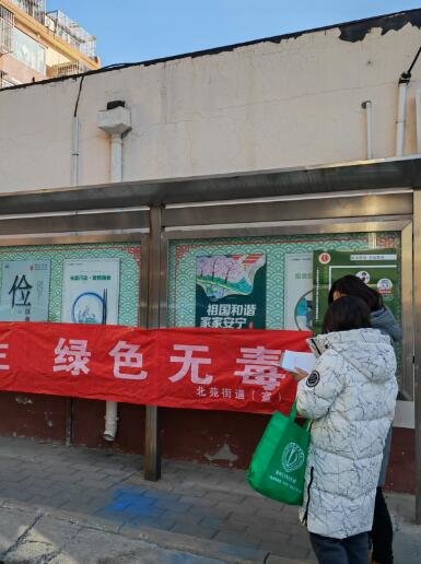 1月18日,西城区大栅栏街道禁毒工作站在社区开展以“亲人更健康 社会更有序”为主题的禁毒宣传活动。