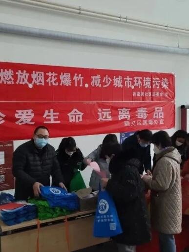 兔年春节将至,顺义区禁毒办组织天竺镇、空港街道开展禁毒主题宣传活动。空港街道禁毒工作小组联合相关单位开展禁毒宣传进社区活动,禁毒社工、禁毒志愿者结合仿真毒品模型为社区居民讲解毒品的危害以及新型毒品的种类、如何预防毒品侵害、《北京市禁毒条例》等相关知识,号召大家都参与到禁毒行列中来,铲除罂粟花苗,宣传吸毒危害,发现涉毒违法犯罪线索及时向公安机关举报。天竺镇禁毒工作小组在天竺家园东门商铺一条街开展禁毒宣传活动。现场悬挂禁毒主题宣传标语、设立咨询台,禁毒社工向过往居民及饭店工作人员发放禁毒宣传资料,结合《条例》为大家讲解禁毒知识及涉毒行为的法律责任,使广大居民认清了毒品对个人、家庭、社会的危害。